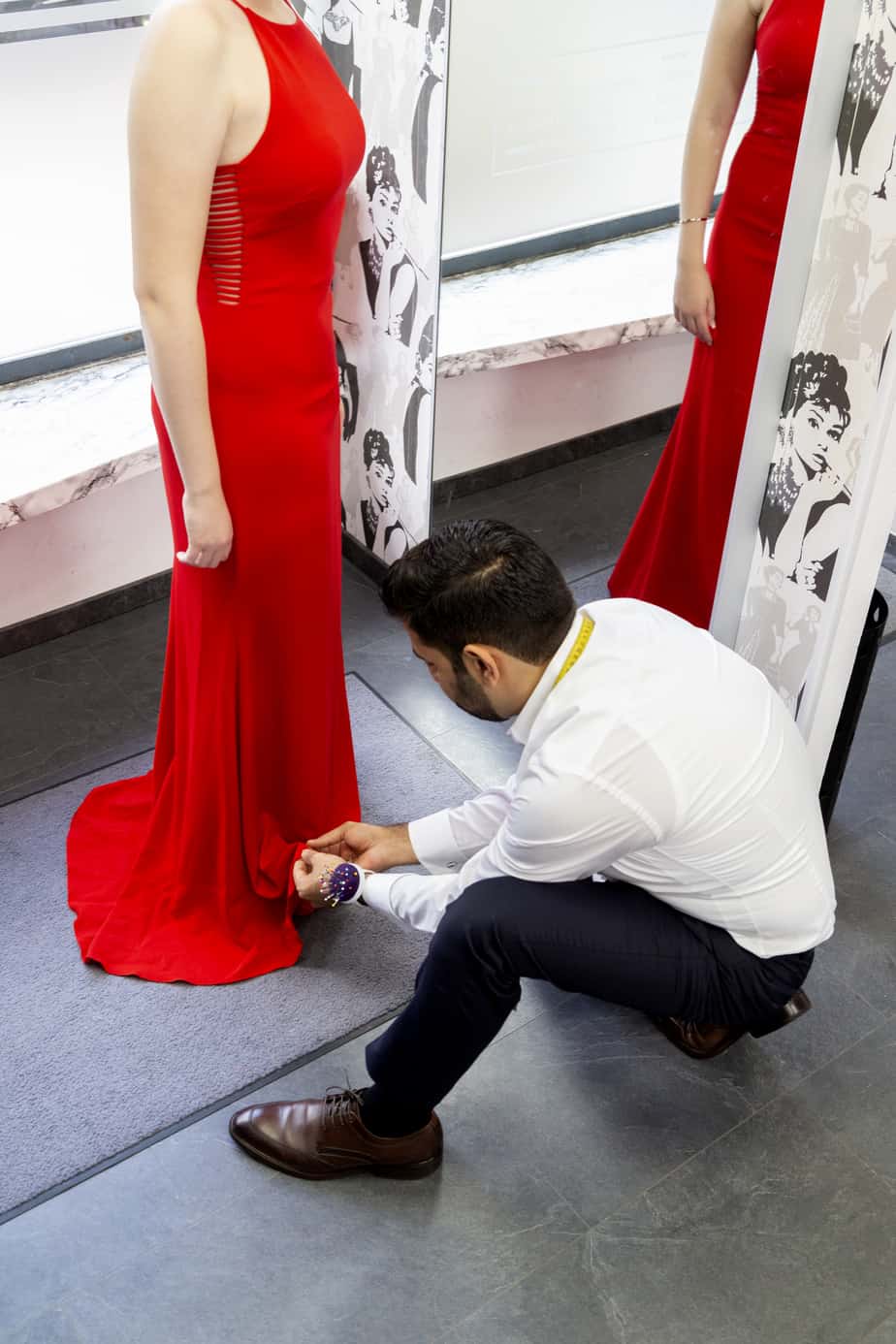 Bei uns erhalten Sie professionelle Änderungen für alle Arten von Kleidungsstücken - von der einfachen Hosenkürzung bis zur komplexen Brautkleidanpassung. Unsere erfahrenen Schneider arbeiten mit höchster Präzision und Sorgfalt, um Ihre Garderobe perfekt an Ihre individuellen Bedürfnisse anzupassen. Dank unseres Express-Services sind auch kurzfristige Änderungen möglich, ohne dabei Kompromisse bei der Qualität einzugehen.